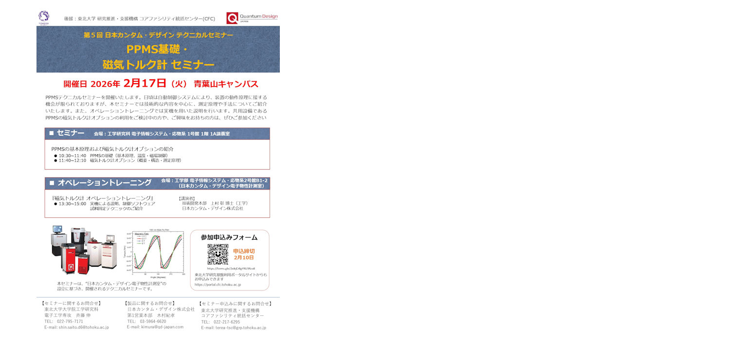 [ 2026年2月17日開催 ] 『第5回 日本カンタム ・ デザイン テクニカルセミナー PPMS基礎 ・ 磁気トルク計 セミナー』 開催のご案内